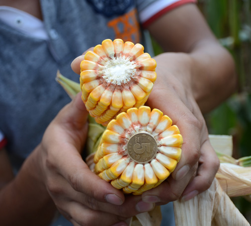 特征特性:平均生育期106左右。株高 275厘米,穂位 100厘米。穗長(zhǎng) 18.5 厘米,穗行數(shù) 16-18 行。穗軸紅色,籽粒黃色,馬齒型,粒重 35.4克。