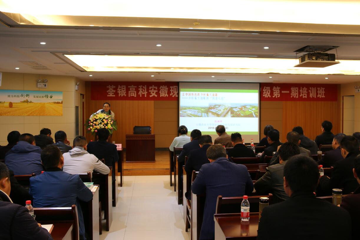 ? ? 本次培訓(xùn)班由安徽省農(nóng)委主辦、荃銀高科承辦,集中培訓(xùn)時(shí)間為3月18日至22日,主要培訓(xùn)課程有水稻規(guī)模生產(chǎn)管理技術(shù)、水稻育種及品種選用、社會(huì)化服務(wù)組織對(duì)接、小麥規(guī)模生產(chǎn)管理技術(shù)、新型職業(yè)農(nóng)民職業(yè)素養(yǎng)、現(xiàn)代農(nóng)業(yè)創(chuàng)業(yè)等。3月18日上午,安徽農(nóng)業(yè)大學(xué)新農(nóng)村發(fā)展研究院張承祥教授為學(xué)員開(kāi)講“鄉(xiāng)村振興戰(zhàn)略”主題課。在學(xué)習(xí)培訓(xùn)期間,除了理論課程,農(nóng)場(chǎng)主學(xué)員們將于3月20日赴廬江郭河現(xiàn)代農(nóng)業(yè)科技示范園進(jìn)行參觀學(xué)習(xí),開(kāi)展實(shí)踐教學(xué)活動(dòng)。