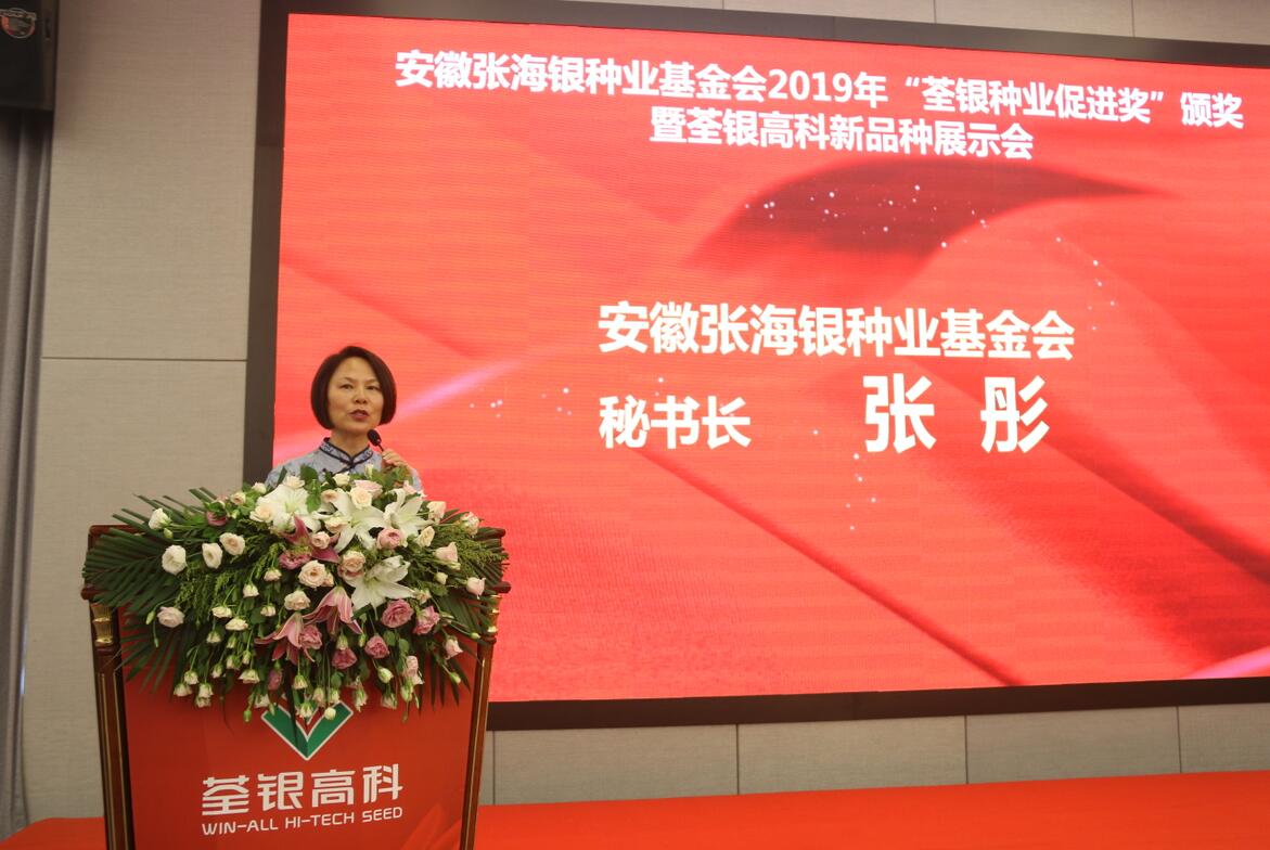 ??? 荃銀高科副董事長(zhǎng)、總經(jīng)理、基金會(huì)副理事長(zhǎng)張琴致歡迎辭并作報(bào)告,她結(jié)合當(dāng)前種業(yè)形勢(shì),詳細(xì)介紹了荃銀高科的創(chuàng)新與發(fā)展,展示了荃銀高科的核心競(jìng)爭(zhēng)力,并闡述了發(fā)起成立安徽張海銀種業(yè)基金會(huì)的初衷及在履行社會(huì)責(zé)任方面所做出的努力。會(huì)上,她向“荃銀種業(yè)促進(jìn)獎(jiǎng)”獲得者表示祝賀,并指出,“種業(yè)強(qiáng)國(guó)”是“中國(guó)夢(mèng)”的重要組成部分,希望在座的種業(yè)人能夠矢志不渝,以終為始,為我國(guó)現(xiàn)代種業(yè)發(fā)展作出新的貢獻(xiàn)。