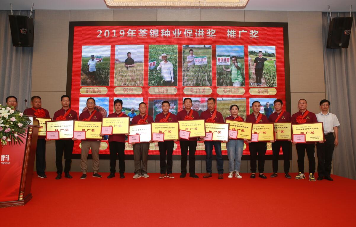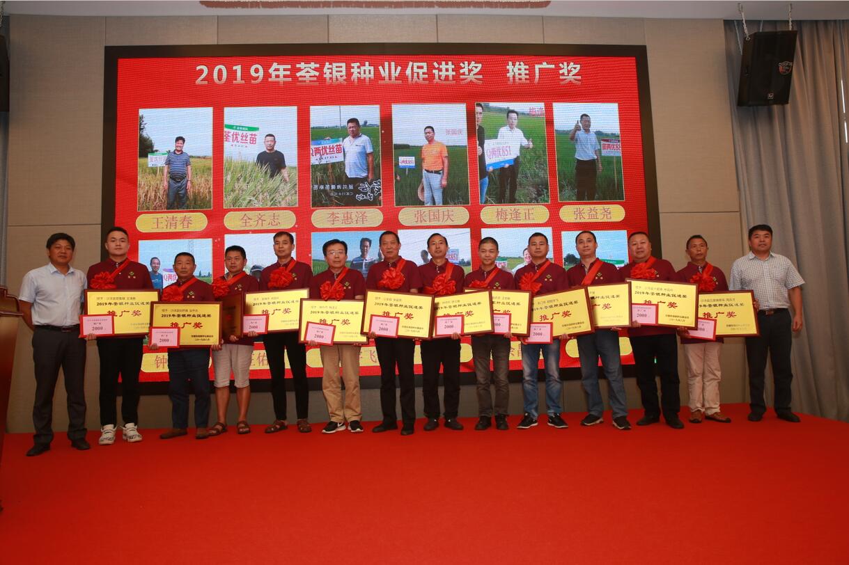 ??? 2019年9月1日,安徽張海銀種業(yè)基金會(huì)“荃銀種業(yè)促進(jìn)獎(jiǎng)”頒獎(jiǎng)大會(huì)暨荃銀高科水稻品種展示會(huì)在合肥召開。中國(guó)種業(yè)十大功勛人物、荃銀高科創(chuàng)始人、安徽張海銀種業(yè)基金會(huì)理事長(zhǎng)張海銀,安徽省種子管理總站原站長(zhǎng)、基金會(huì)專家組顧問成員、“荃銀種業(yè)促進(jìn)獎(jiǎng)”評(píng)審委員會(huì)主任孔令傳,荃銀高科副董事長(zhǎng)、總經(jīng)理、基金會(huì)副理事長(zhǎng)張琴,荃銀高科董事、常務(wù)副總經(jīng)理、基金會(huì)副理事長(zhǎng)王玉林,荃銀高科副總經(jīng)理、荃銀農(nóng)科院院長(zhǎng)、首席技術(shù)官?gòu)垙暮希饡?huì)秘書長(zhǎng)張彤,荃銀高科總經(jīng)理助理劉義銳、監(jiān)事會(huì)主席謝慶軍,荃銀高科工會(huì)主席、基金會(huì)監(jiān)事鄭滿生,中化現(xiàn)代農(nóng)業(yè)、中化化肥等單位領(lǐng)導(dǎo)嘉賓,以及來自湖北省16個(gè)縣區(qū)180多位三農(nóng)一線種業(yè)工作者參加了會(huì)議。