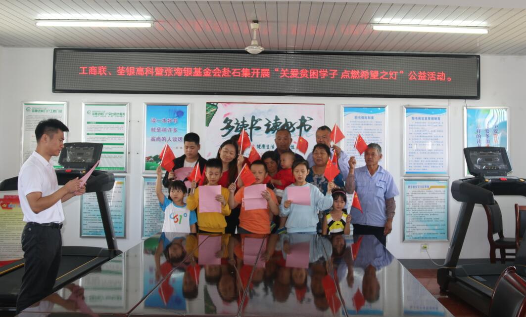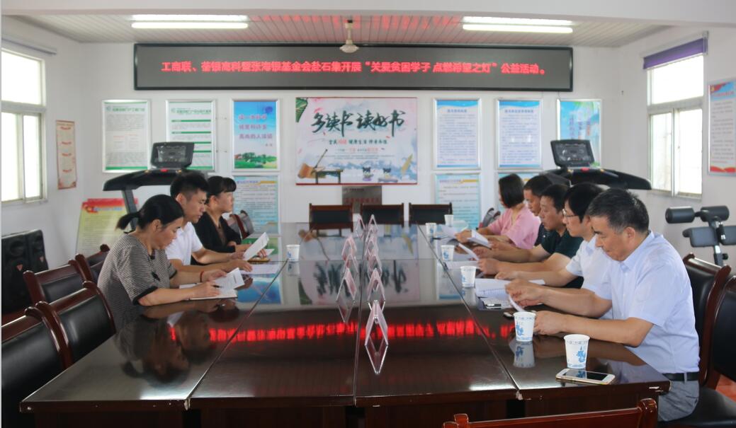 ??? 2019年9月26日,為積極響應(yīng)和認(rèn)真落實(shí)合肥市工商聯(lián)、總商會關(guān)于合肥市民營企業(yè)“百企幫百村”精準(zhǔn)扶貧行動實(shí)施方案精神,荃銀高科攜手安徽張海銀種業(yè)基金會赴長豐縣陶樓鎮(zhèn)石集社區(qū)開展“關(guān)愛貧困學(xué)子,點(diǎn)燃希望之燈”公益活動。合肥市工商聯(lián)副主席沈鑫、經(jīng)濟(jì)處主任科員陳焱垚,安徽張海銀基金會秘書長張彤,荃銀高科工會主席、辦公室主任鄭滿生,荃銀瓜菜公司副總經(jīng)理陳孝奇,陶樓鎮(zhèn)石集社區(qū)書記靳進(jìn)等村委工作人員參加活動,并進(jìn)行座談交流會。